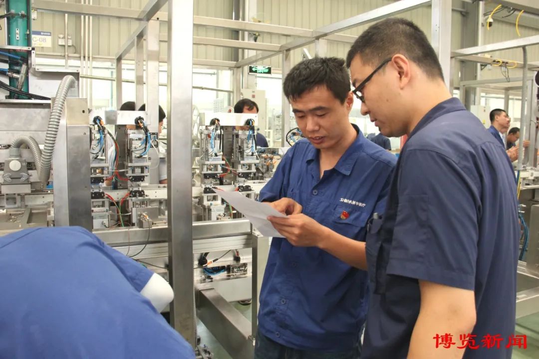 工作人员正讨论技术问题订单有“厚度”,生产有“热度”。在新华医疗国际贸易专用车间里,产线满负荷运转,口腔压力真空灭菌器等产品下线后即刻发往海外。加班加点赶制订单,已经成为车间工人近几个月的常态。许荣凯介绍,今年1至5月份,公司医疗装备出口增长超过50%。“随着国际贸易的快速发展,车间每个单品都受到了国际客户的青睐。目前,订单已经排到了10月份。”许荣凯说。