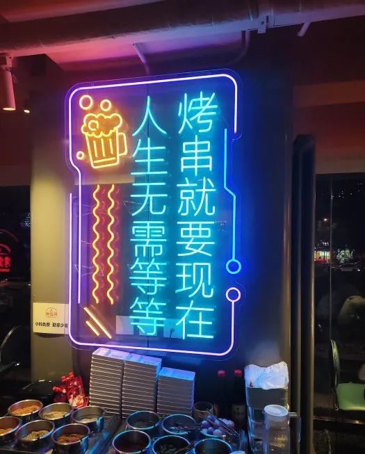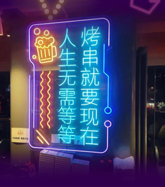 烤焰所在北京算得上是“网红”烧烤店了,小编常去的是双井这家,赛博朋克的店铺风格特别吸睛。