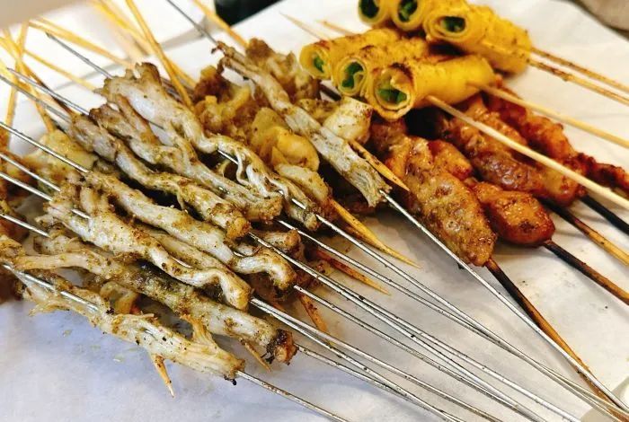 “万物皆可烤”在他们家得到了印证。除了常见的牛羊肉串,还有像鱼类以及肥肠等食材,都会拿来烤上一烤,味道还真挺不错。
