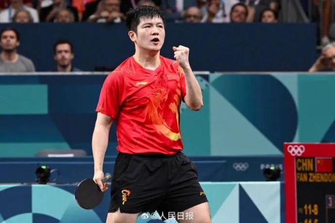 樊振东 图源:@人民日报8月1日,在一场艰苦的四分之一决赛中,樊振东以4比3击败了日本选手张本智和,这一比赛将体育与流行文化的交汇推向了高潮——因为这个日子与斯威夫特的热门歌曲《8月》不期而遇。