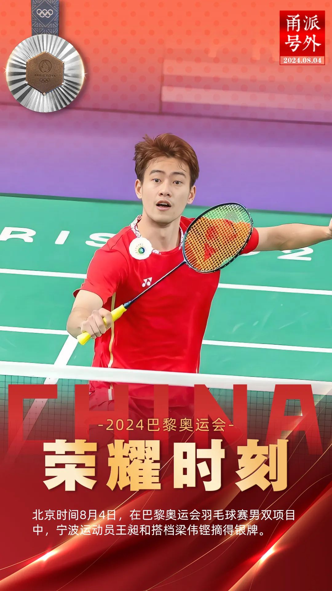 巴黎奥运会,是宁波运动员王昶的第一届奥运会。从6岁开始结缘羽毛球,王昶用一步一个脚印的努力,站上了奥运舞台。