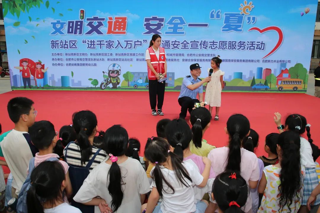 合肥市公安局交警支队新站大队联合新站文明办、团工委于8月组织开展“文明交通 安全一‘夏’”——新站高新区“进千家入万户”交通安全宣传志愿服务活动。