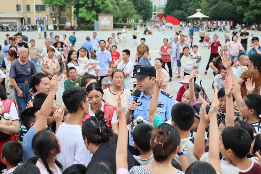 8月2日下午,活动启动仪式在站北社区北岗花园小区广场举行。活动现场,民警通过播放交通事故警示视频、与群众开展互动问答、普及交通安全法律法规常识,增强广大社区居民的安全出行意识,在小区广场上吸引了上百人围观,随后的有奖问答环节也吸引了许多居民参与。不少参与活动的小伙伴,拿到了心心念念的交警小熊玩偶等纪念品。
