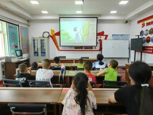 影片精彩绝伦,故事情节跌宕起伏,孩子们专注地观看。