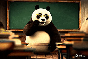 场景说明:该场景通过设置两版提示词,来测试大模型对于想象力的理解。简单版提示词仅有大熊猫、金边眼镜、黑板,模型可以通过这三个关键词生成具有可自主添加其他内容的视频,来展现模型的想象力和细节搭建;复杂版提示词按照清影内设的提示词调试小程序生成,涉及场景、风格、人物、环境、色彩、氛围和清晰度等,测试模型的细节刻画。