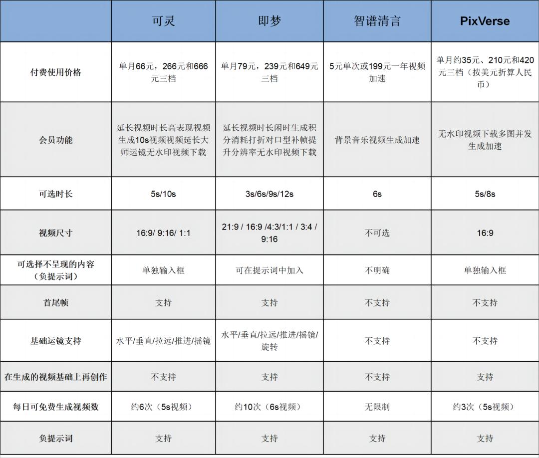 本次我们选取几个国内头部视频生成模型进行实测,包括可灵、即梦、PixVerse、清影(智谱清言),具体直观地测试不同的模型表现。