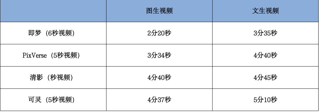 四个头部AI视频生成模型对比表从生成速度上,我们同步实测了几个模型的生成速度,得到如下结果: