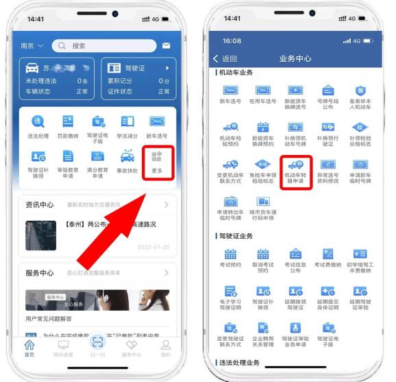 1、打开“交管12123”APP,点击展开更多→点击【机动车转籍申请】