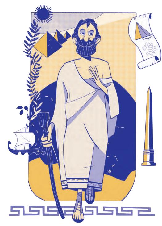 不过,令泰勒斯声名大噪的还是他的埃及求学之旅。大家可以把它想象成学校组织的徒步旅行,只不过泰勒斯走得更远,去的地方更神秘。
