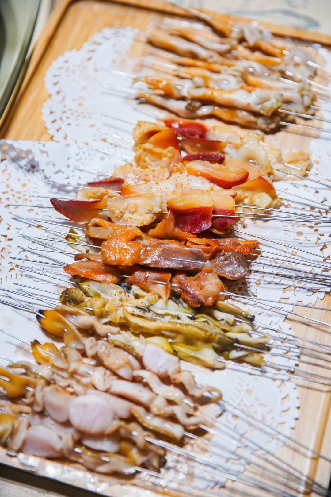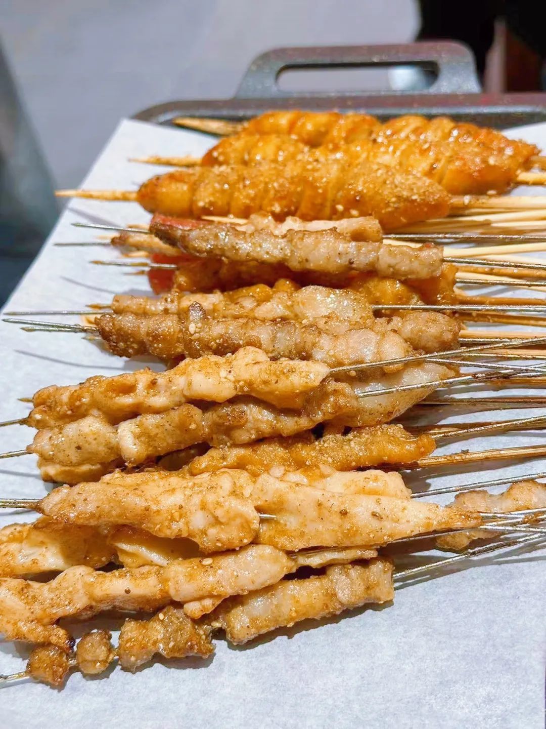 还有蜜汁鸡翅、猪脆骨、板筋、心管等各种各样的肉食,每家都有独特的风味,不妨选择自己喜欢的品尝一番~