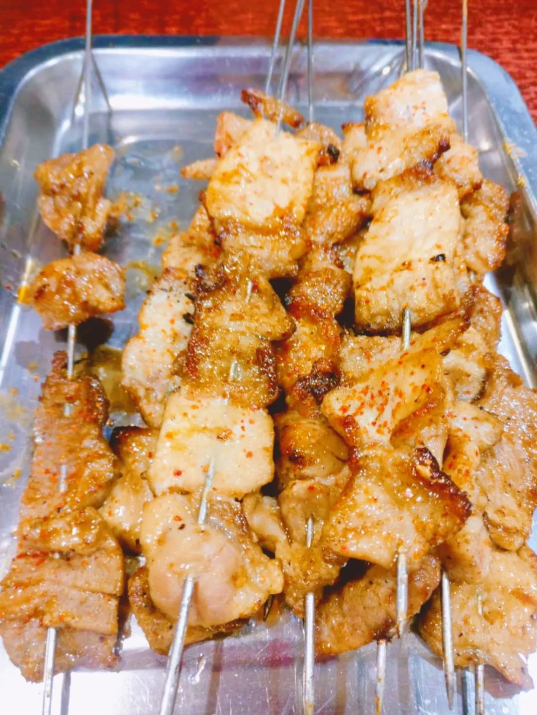 烧烤的标配自然是各类肉肉,而烟台人做烧烤有自己的心得:肉类不提前腌制,靠调料增加香气,经过炭火的烤制和独特的秘方加持,能让肉质更细嫩多汁,不老不柴。