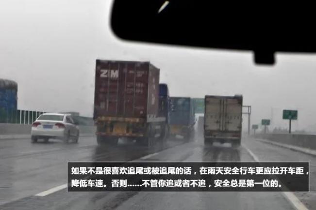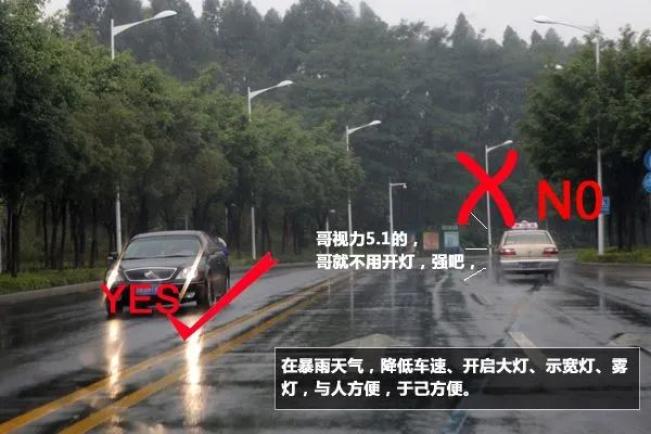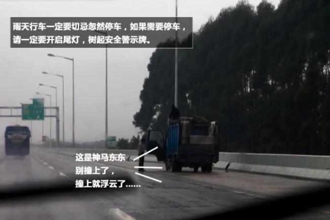 雨天行车最忌讳的就是,前车忽然之间停车,在视野不清的情况下,非常容易发生意外。如果确需停车的话,请靠边,然后开启尾灯,树立安全警示标志。10