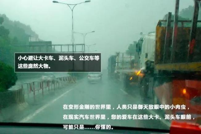 下雨天,视线不清楚,如果遭遇泥头车、大卡车、带拖斗的货车、工程车这些“庞然大物”,小车要注意避让,以免发生意外。06