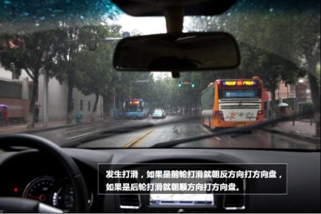 发生轮胎打滑时,切莫慌张。如果前轮打滑就按照打滑反方向打方向盘,如果后轮打滑就按照打滑方向打方向盘。没有ESP的车辆在高速公路行驶的时候,要尽量避免前轮单侧压到积水区域。07