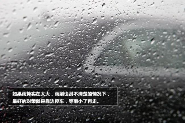雨实在下得很大的时候,有可能雨刮都刮不清楚,这时最好的办法就是靠边选择安全地带停车,等雨下得小一点点的时候再走,这样可以避免很多意外发生。11