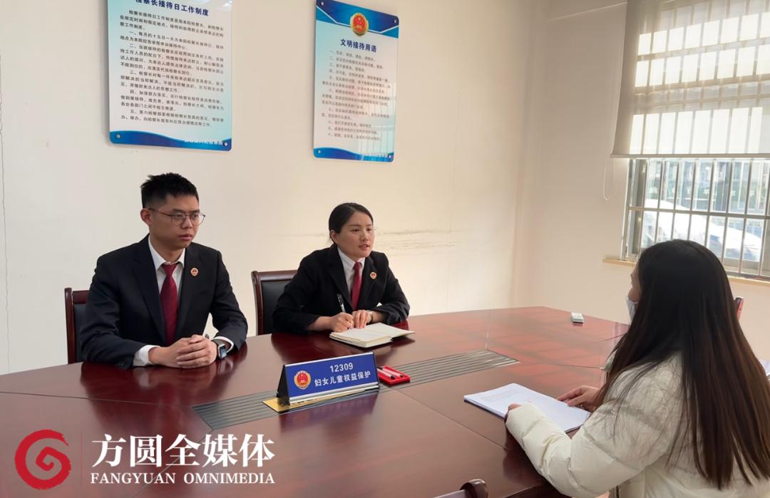 浙江省安吉县检察院办案检察官李慧(中)在接待权益被侵害妇女。(图片来源:受访者供图)