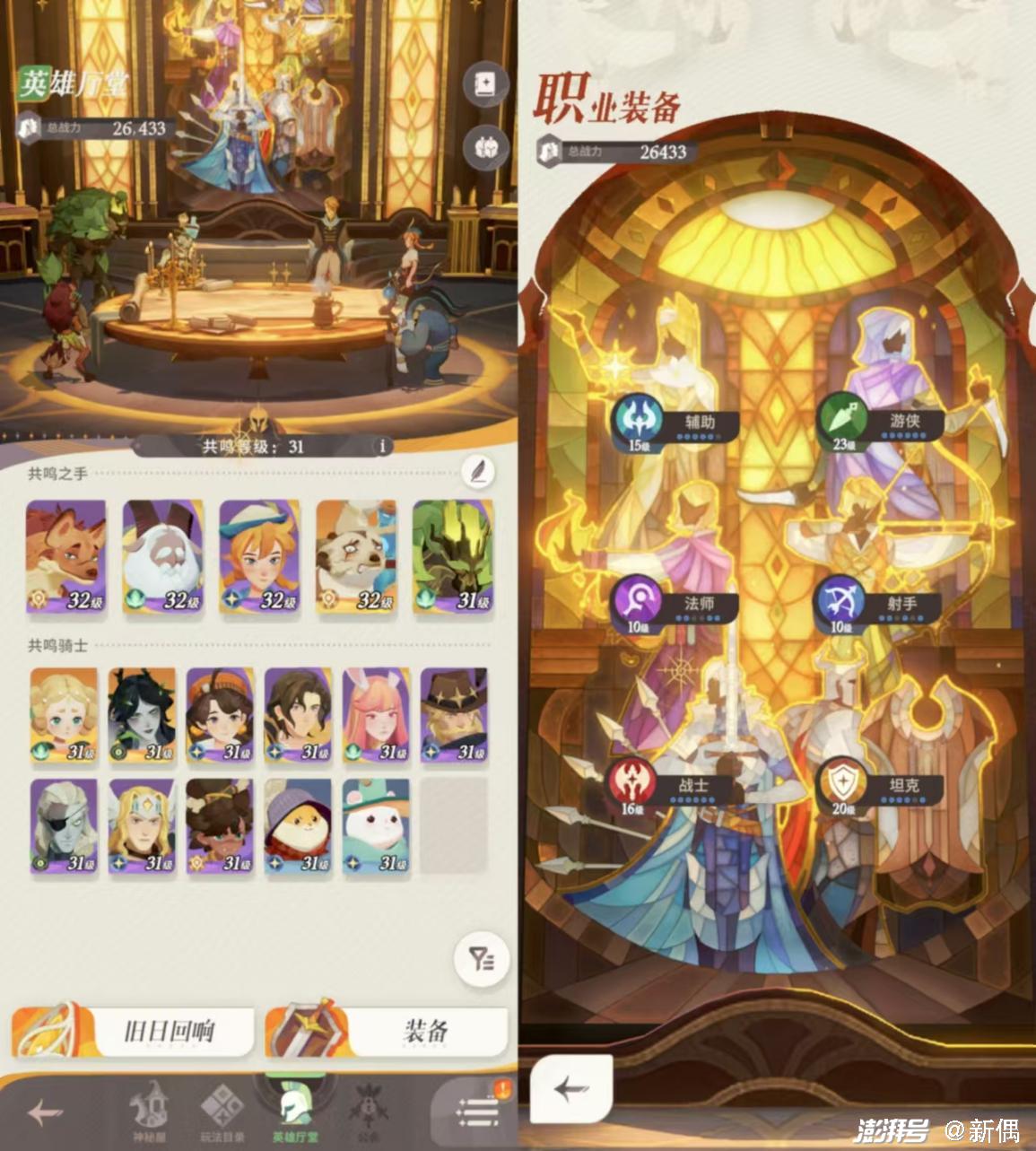 等级共享可以简单理解为只需培养五个角色,其他角色可以继承,这样就有效避免前期资源浪费导致的卡关问题。而职业装备系统则将所有角色分为了6个职业,每套装备对整个职业都生效,省去了逐个角色装备调整,且装备的数值固定,没有随机词条,养成难度较均衡。