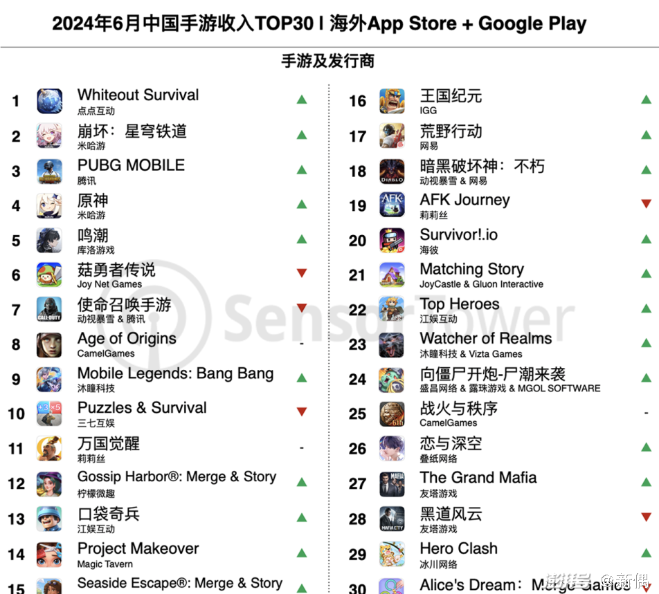 虽然内容叙事型游戏已成为国内市场的“主旋律”,持续霸占游戏畅销榜,但根据Sensor Tower公布的6月中国手游收入TOP30,国内收入最高的手游已有近三分之一都是挂机小游戏类型。