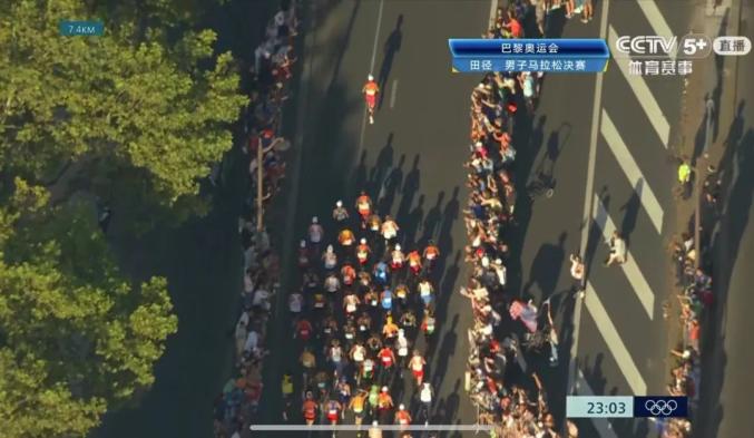 ▶到达5公里计时点时,国家队队友杨绍辉一路领跑,此时何杰出现了掉速。