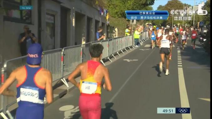 ▶比赛进入到14.5公里至17.9公里时,其间的3.4公里进入相对明显的爬升阶段,由于此前跟跑第一梯队,何杰体力消耗太大,比赛中体能开始出现问题,在16公里处逐渐被其他运动员反超。