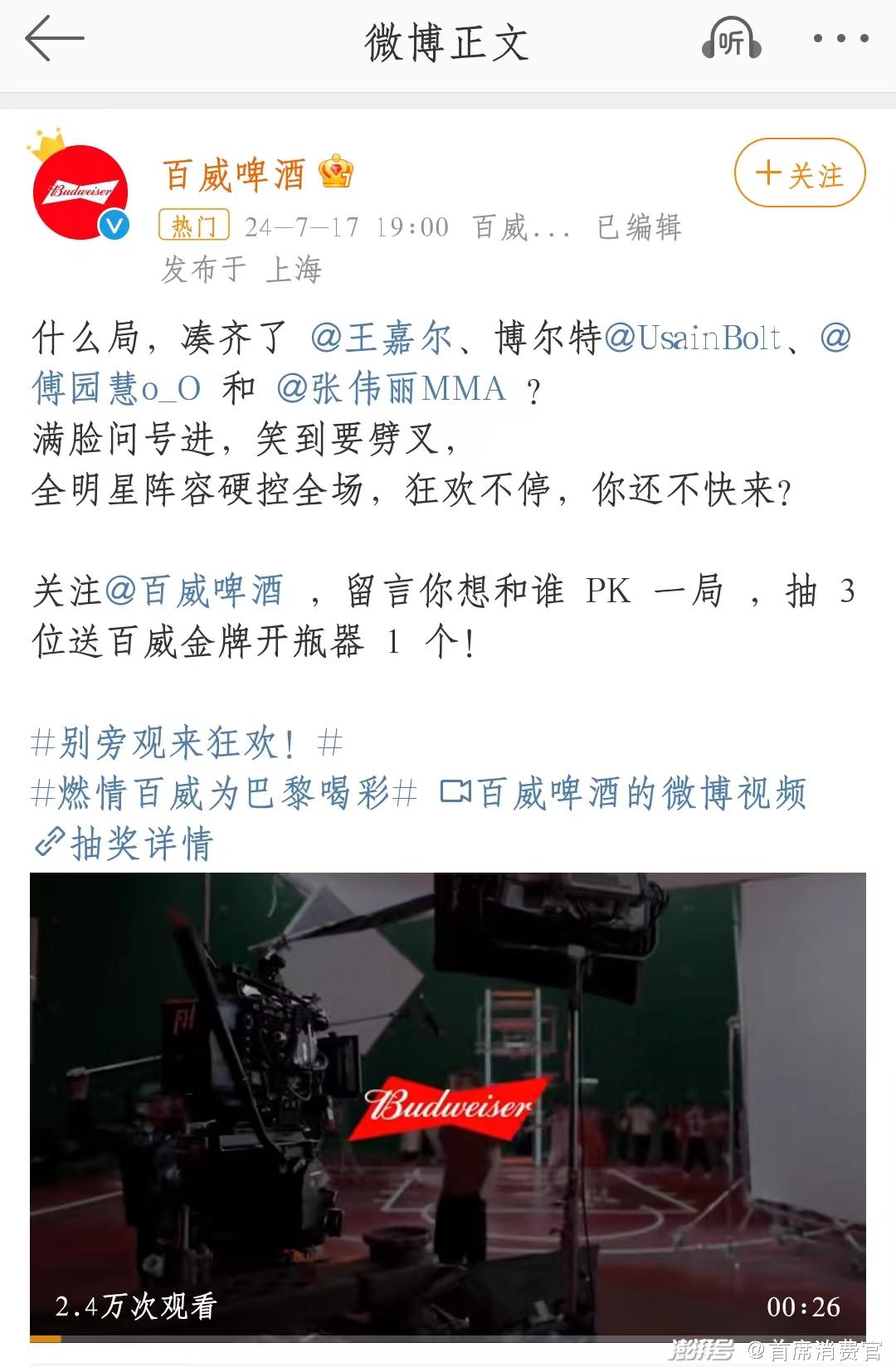 在巴黎奥运会期间,百威啤酒推出了一则广告,风格上非常“中西混搭”。既有歌手王嘉尔,综合格斗世界冠军张伟丽,游泳世界冠军傅园慧,还有百米世界冠军博尔特,如此奇妙的组合让这支广告取得了良好的传播效果。