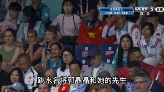 “跳水名将郭晶晶和她的先生也在观看这场比赛。”