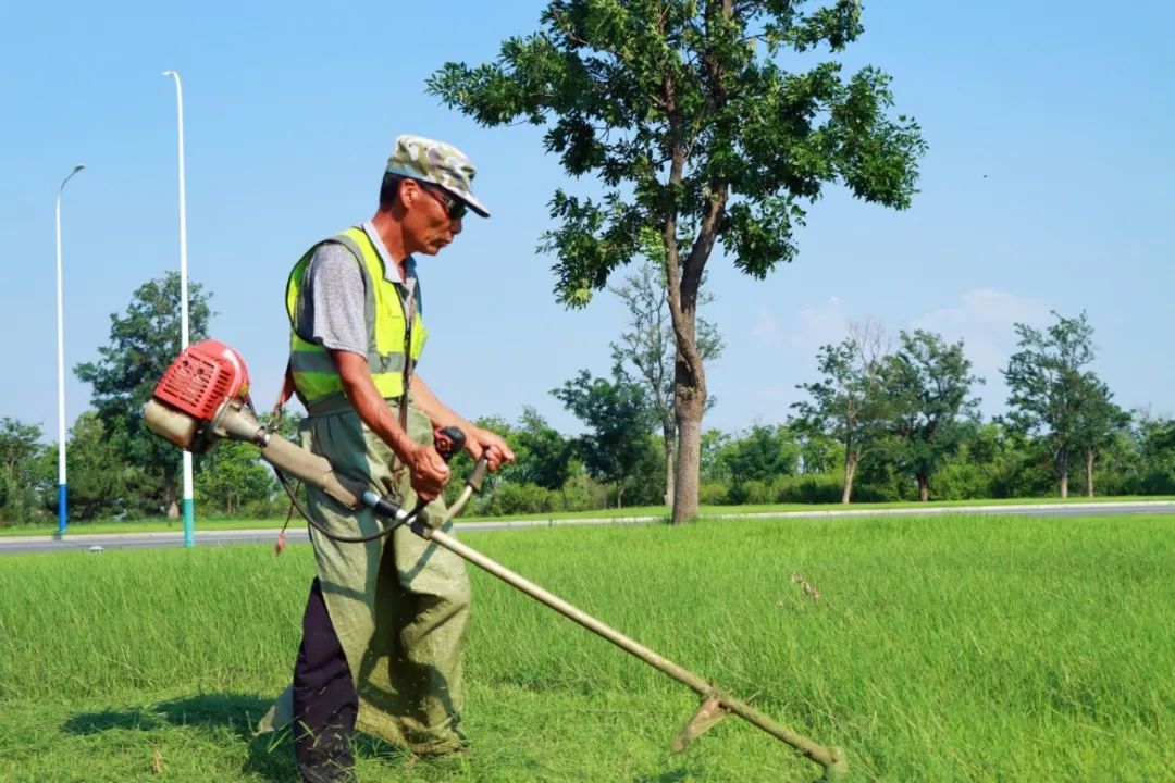 “咕咚咕咚……”8月2日上午10时许,记者在山东(潍坊)海洋科技大学园欣泰商业街的人行道旁看到,68岁的环卫工人王兆恩正仰着头大口大口地喝水,黝黑的脸庞和胳膊上布满了密密麻麻的汗珠。王兆恩从事环卫工作已有7年时间,主要负责滨海科创园的道路巡查工作。作为环卫队大队长,他每天提前上岗,仔细巡查各条道路的卫生情况,巡查之余又拿起扫帚、骑上电动三轮车,回归到普通环卫工人的岗位,一天工作下来,经常累得满头大汗、腰酸腿痛。
