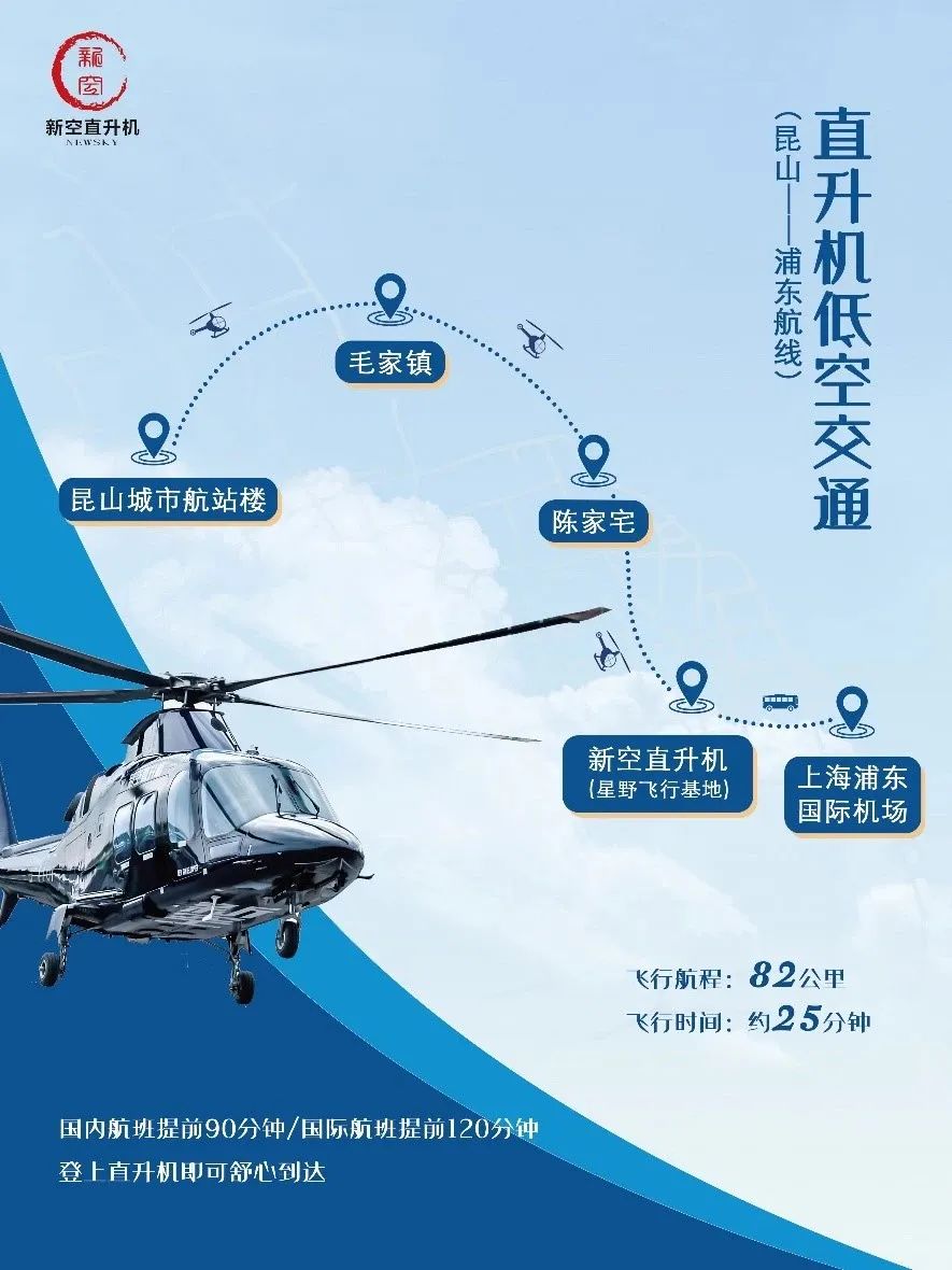 直升机从昆山城市航站楼起飞,经过约半小时的飞行后,在浦东星野飞行基地平稳降落,将通勤时间大大缩短,让大众出行更加便利,标志着上海-苏州长三角区域低空空中载客航线成功开通。