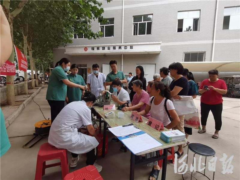 8月8日上午,浩林苑社区联合康远医疗、恒辉物业为居民们免费提供测量血糖、血压、血氧以及中医体质检测等服务。