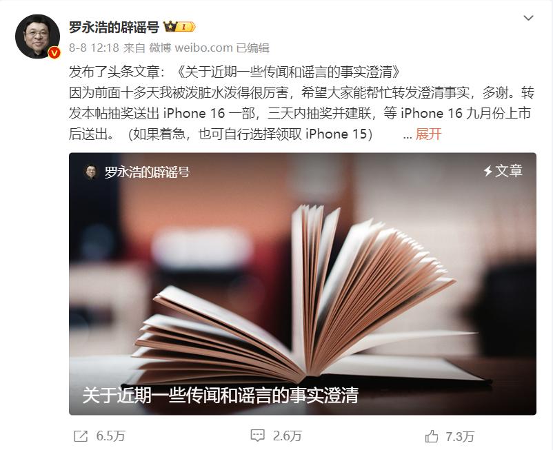 为了这事,老罗还亲手撰写了 5000 字的长文来回应澄清。一个 # 罗永浩回应被指五宗罪 # 的词条,直接就被冲上热搜了。