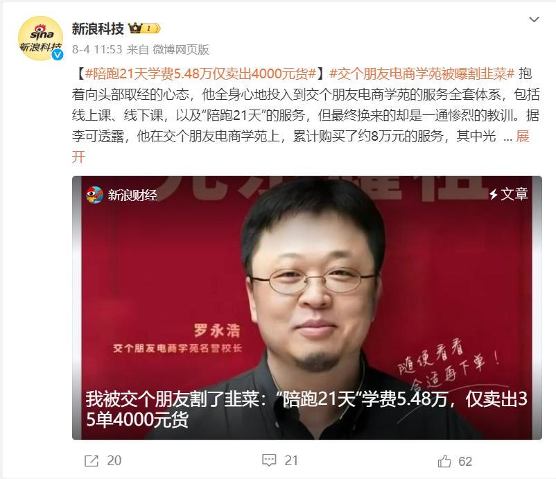 不过,和销量齐飞的是各种对于交个朋友课程的吐槽。除了开头只卖了 35 单的哥们之外,比如根据新浪科技的报道,有学员吐槽说自己两千多块就买回了二十句话。