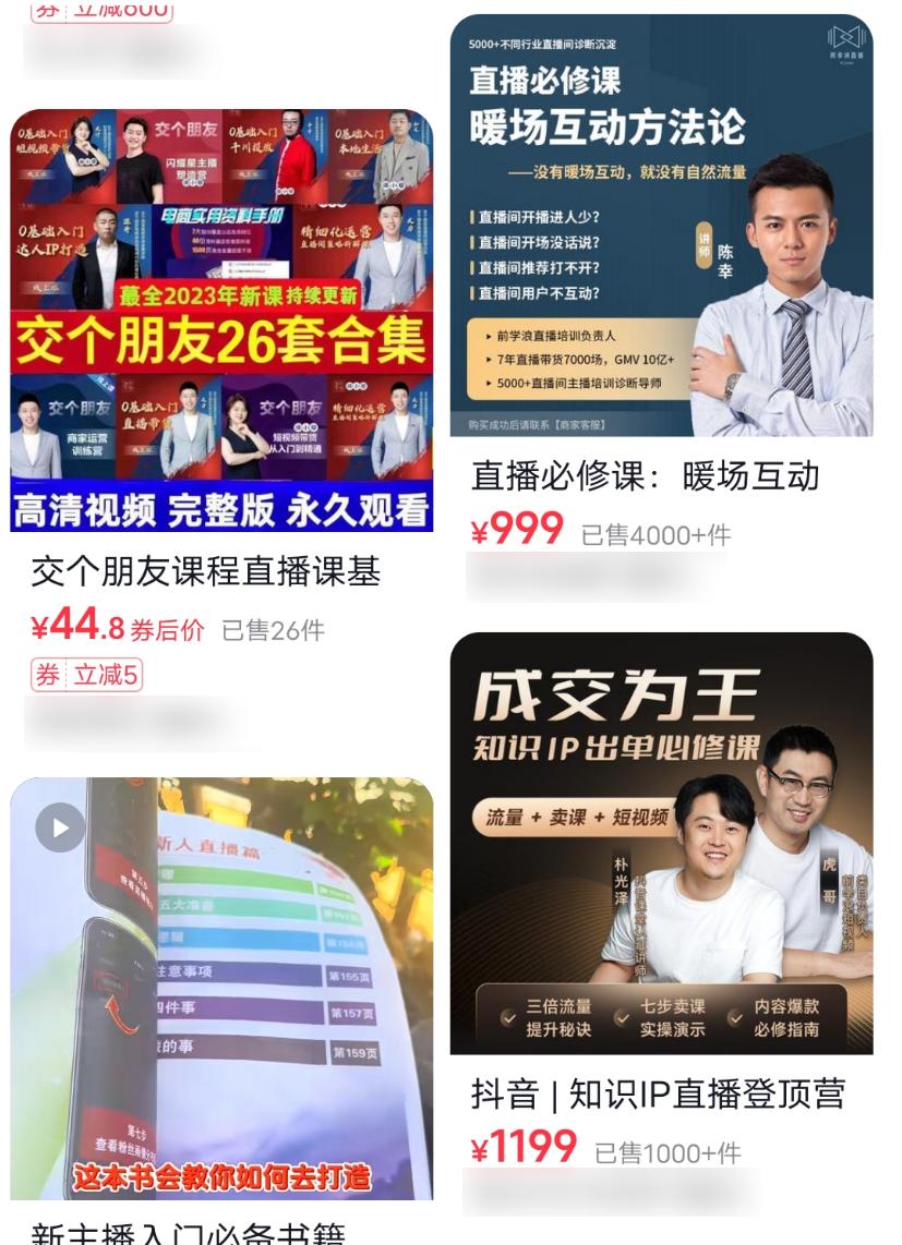 就算这钱他们不挣,也多的是人挣。网上遍地都是各种号称 7 天学会直播、直播速战实战的课。