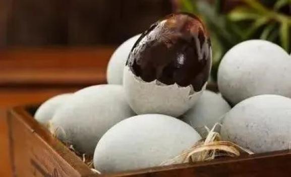 松花蛋源于焦作市修武县五里源乡马坊村,当地水利资源丰富,盛产鸭蛋,后李姓祖先李通不断改良腌制方法,腌制后的鸭蛋有松花绽放,故称“松花蛋”。2007年,“五里源松花蛋制作技艺”被公布为首批省级非物质文化遗产项目。烧鸡