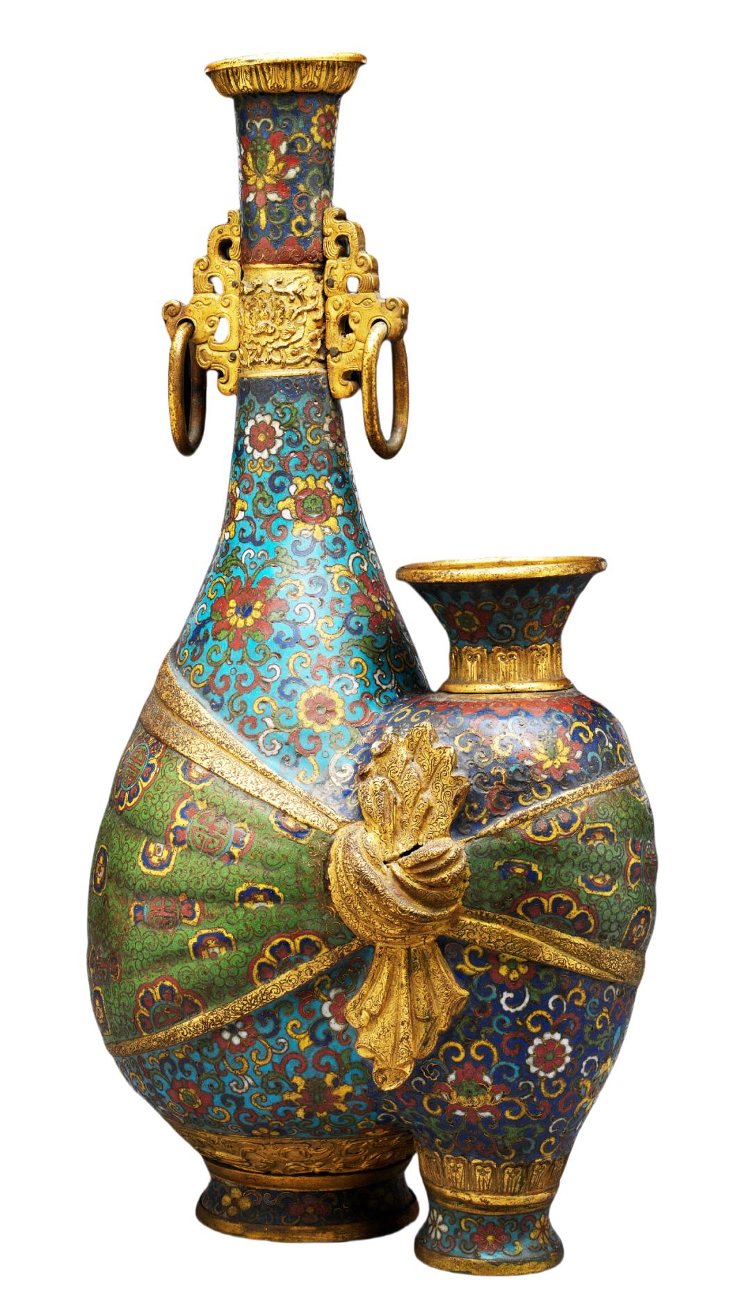 清乾隆 掐丝珐琅花卉纹袱系双连瓶故宫博物院藏