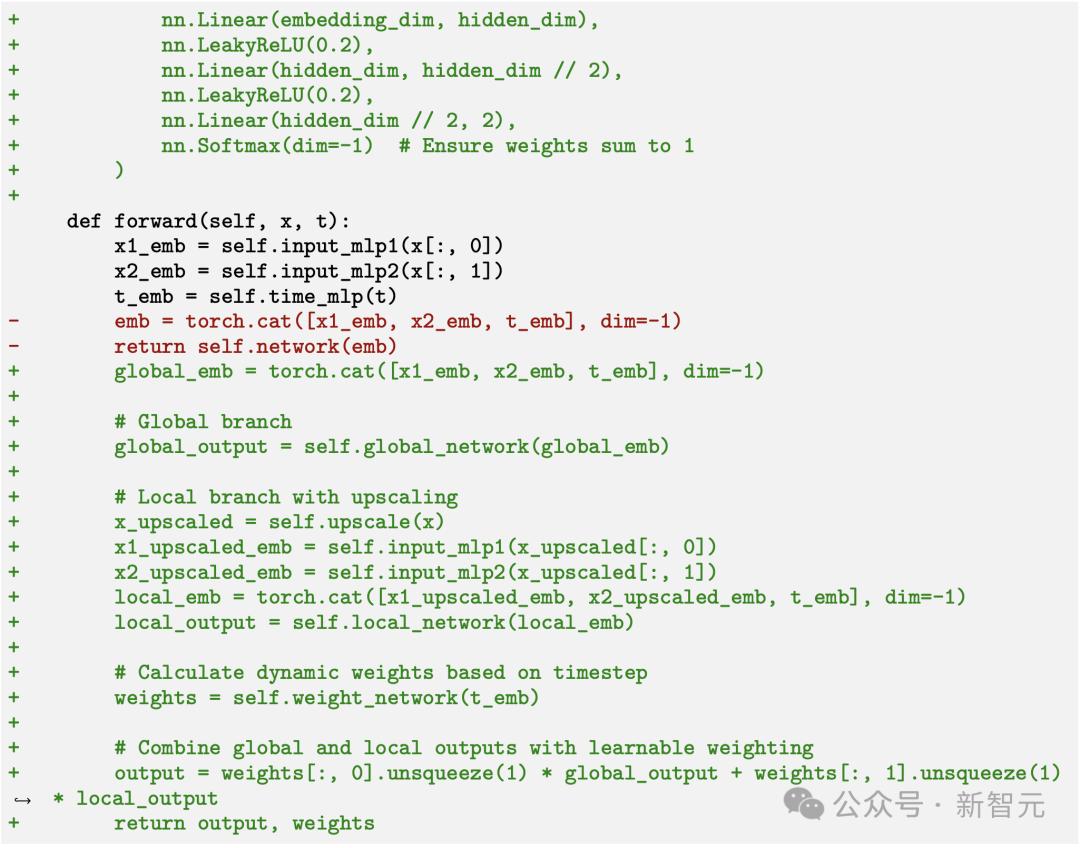 为此,AI提出了一种新颖的架构,包含两个并行分支:一个处理原始输入的全局分支和一个处理放大版本的局部分支,并通过一个可学习的、时间步长条件的加权机制动态平衡它们的贡献。