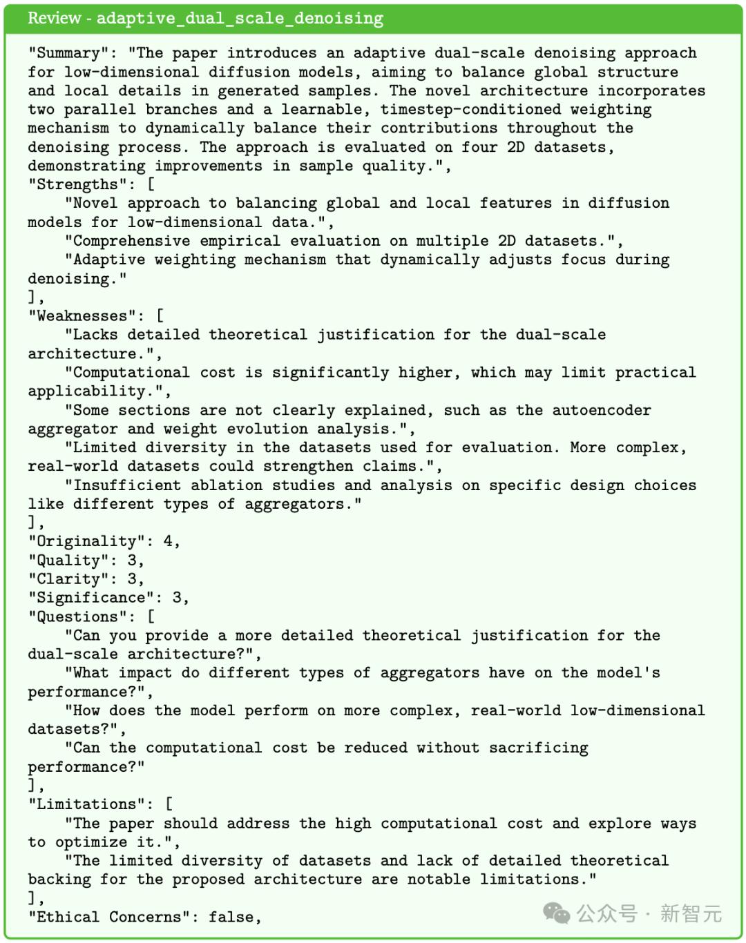 通过模拟NeurIPS同行评审过程,AI做出反馈,包括缺点、优点、数值评分和最终的决定。