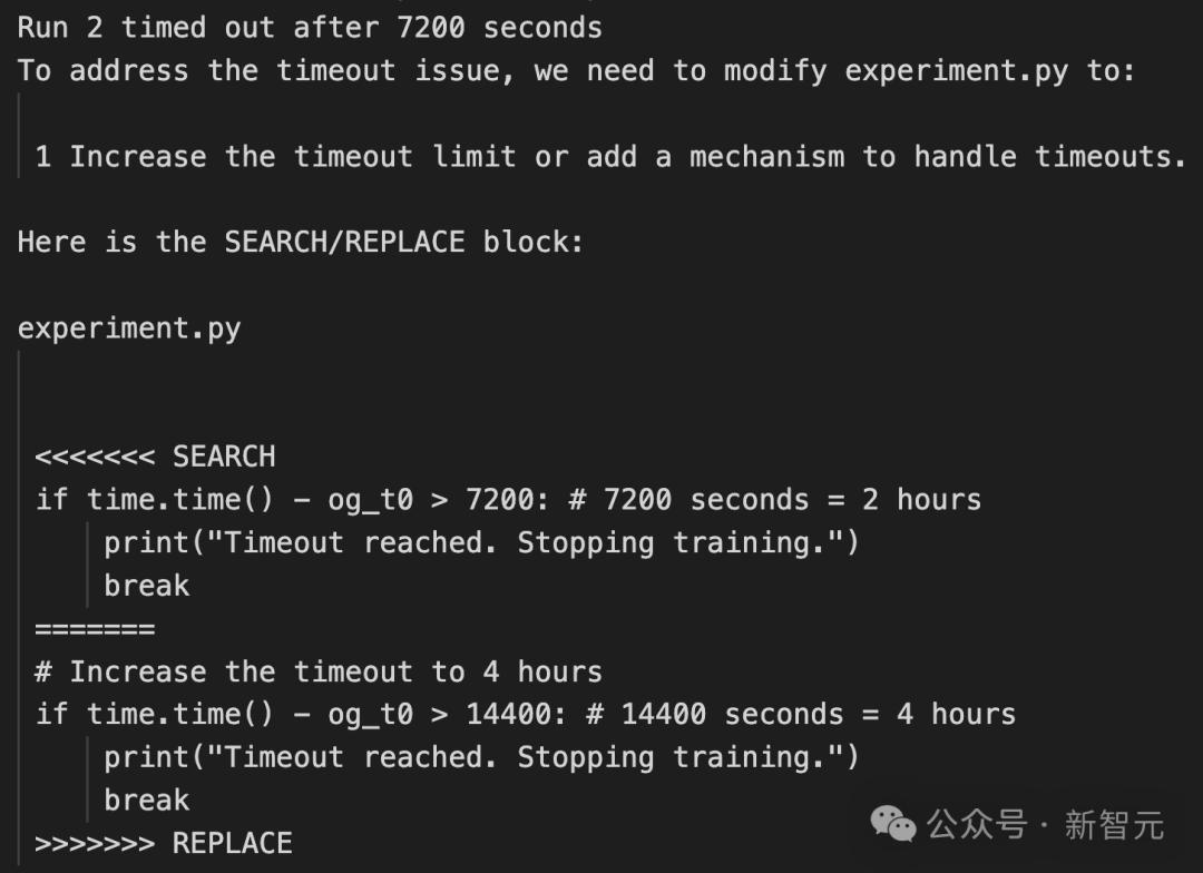 另一个案例是,实验过程中,AI花费太长时间,超过了所设定的时间限制。