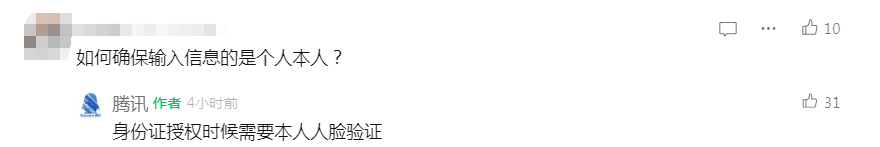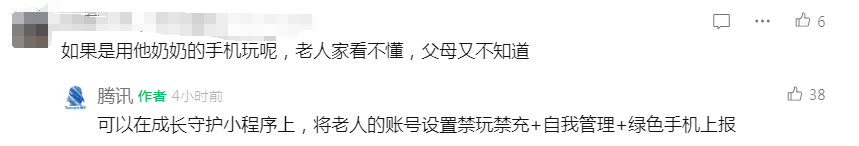 对此,很多网友表示支持,“很实用的功能”“这就准备查一下”。也有网友提出疑问,“如果孩子用奶奶的手机玩怎么办,老人家看不懂,父母又不知道。”对此,腾讯方面回复称,可以在成长守护小程序上,将老人的账号设置“禁玩禁充+自我管理+绿色手机上报”。此外,还有网友表示:“如何确保输入信息的是个人本人?”腾讯方面回复称,身份证授权时候需要本人人脸验证。