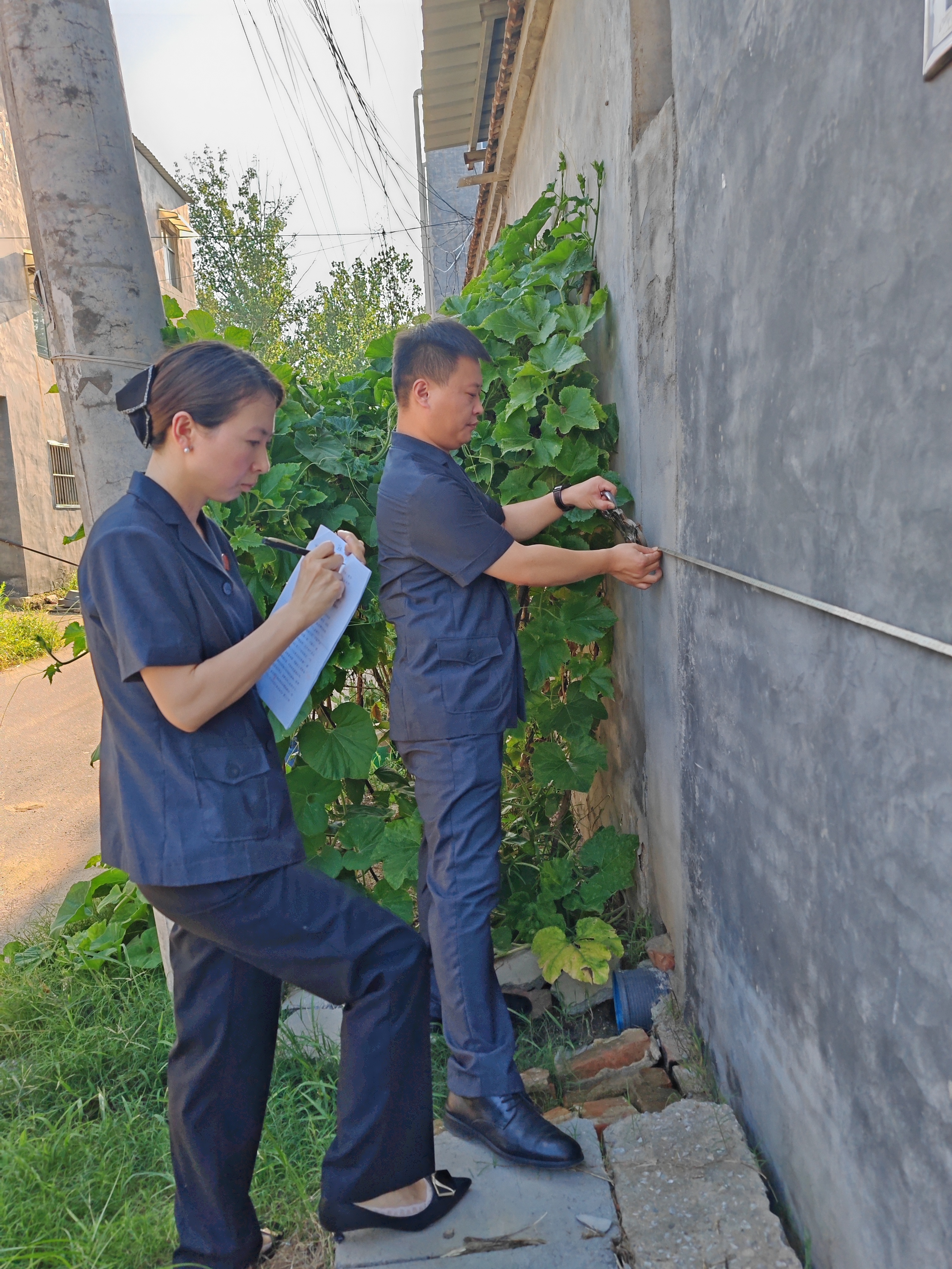 “以事实为依据,以法律为准绳”是法官办案必须遵守的原则,在民事审判中,除了当事人举证外,为了查明案情,法官还可依职权调查取证。8月12日,商丘市梁园区人民法院双八法庭法官刘春梅为查明案件事实,联合司法所与网格员到双八镇某村进行实地勘验测量化解纠纷。