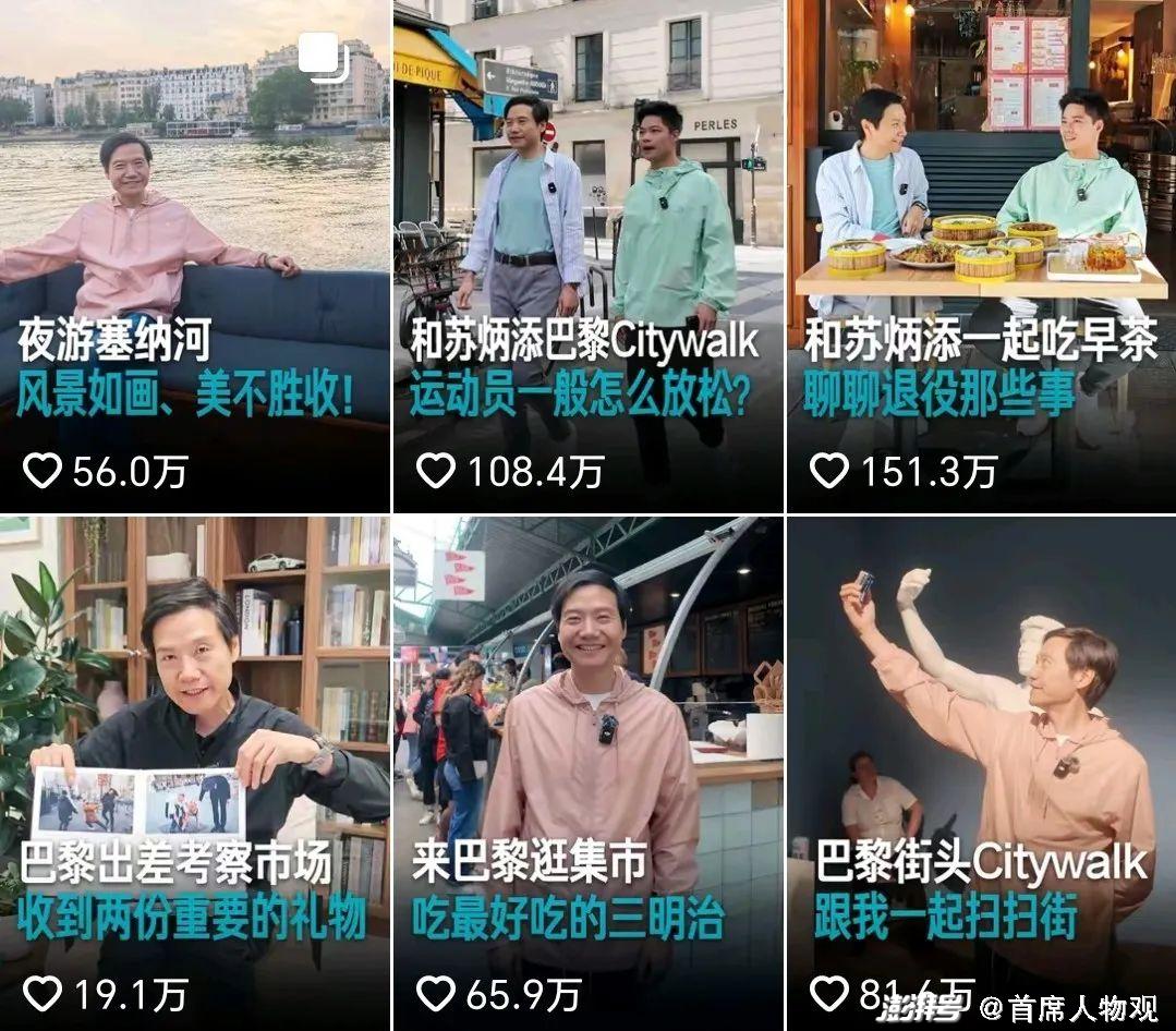 巴黎奥运会举办期间,远在巴黎出差的雷军,又成为网友们的“旅行青蛙”——去哪儿都拍点影像回来。除了与小米代言人苏炳添共同活动等工作行程之外,“游荡”在巴黎街头的雷军,就像一个普通的游客。