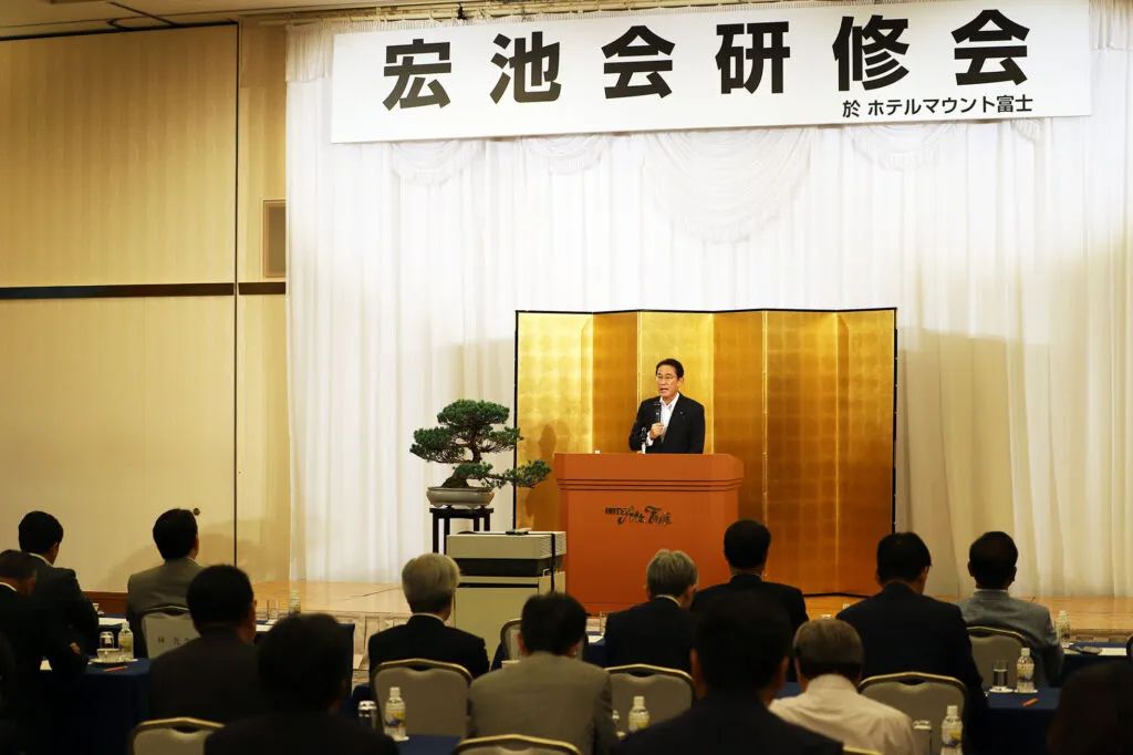 从2023年秋季开始,自民党派阀的政治资金派对问题陆续曝光。派阀的会计责任人和现任国会议员因此被起诉。2024年1月19日,岸田解散了自己领导的派阀“宏池会”,并首次以现任首相身份出席了政治伦理审查会。之后,旨在解决派对金问题的《政治资金规正法》修订案通过。据NHK报道,虽然岸田做出改变看似给国民交代,但在自民党内部,却因对购买派对券的公开基准金额作出让步而遭到批评。