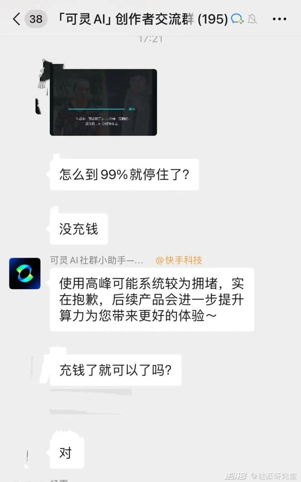 快手可灵创作者群讨论体验问题 图源:可灵社群截图