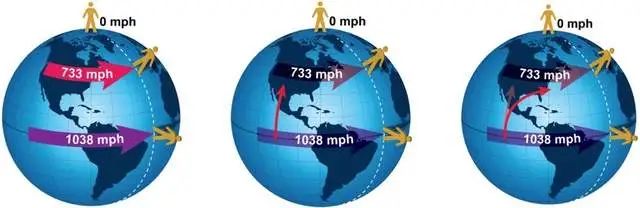 图、副热带和极地急流纬度剖面图地球每24小时自转一圈,但自转速度并不均匀。赤道附近的地区自转速度更快,而远离赤道的地区自转速度越慢。想象地球是一个巨大的旋转球体,赤道位于地球的最宽处,周长约4万公里。这意味着在一次自转中,赤道上的一个点会移动4万公里。随着纬度的增加,地球的周长会逐渐缩小,最终在两极降为0。自转速度也相应地从赤道的1670公里/小时下降到两极的0。
