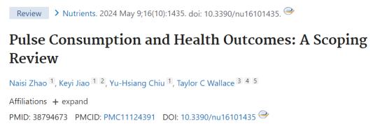 2024年7月,发表在《Nutrients》上的一篇综述文章总结了关于豆类摄入与改善健康的30项研究,明确指出豆类对人体的多种健康益处。