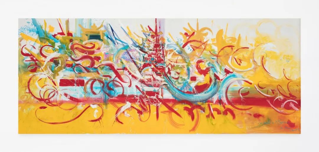 乔治·马修,《伊斯拉·萨博伦》,1981,布面油画,97 x 195cm ©Comité Georges Mathieu / ADAGP, Paris, 2024. 图片提供:艺术家遗产、纳哈迈德当代画廊与贝浩登