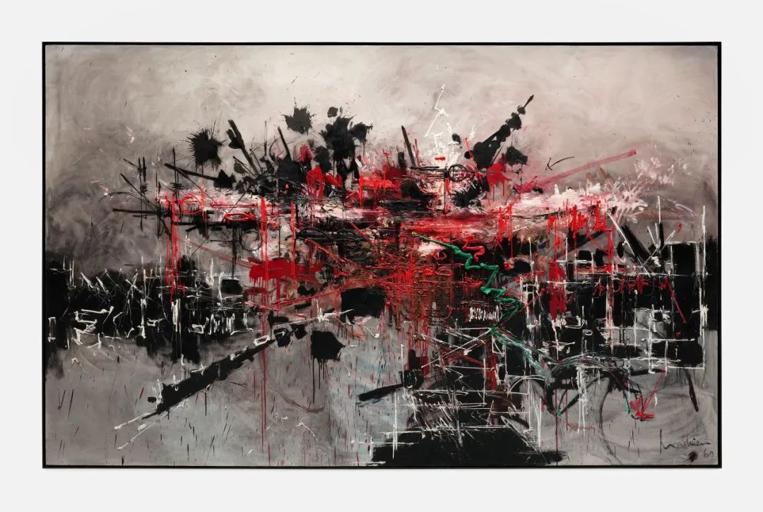 乔治·马修,《子爵城堡》,1965,布面油画,97×195cm ©Comité Georges Mathieu / ADAGP, Paris, 2024. 图片提供:艺术家遗产与贝浩登