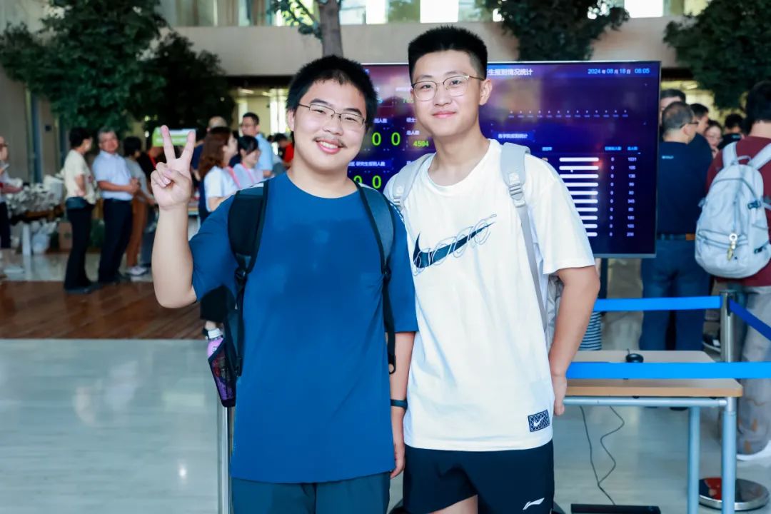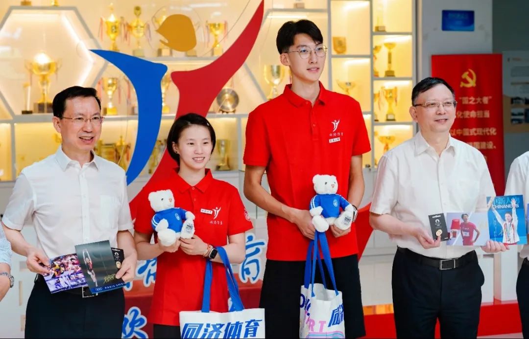“在同济报到点偶遇陈芋汐和徐卓一”,不少新学子纷纷表达这份惊喜。不久前在巴黎奥运会上夺得跳水女子双人10米台金牌和女子单人10米台银牌的跳水运动员陈芋汐,以及在男子110米栏项目比赛中以小组第一晋级半决赛的田径运动员徐卓一前来学校报到。“感谢你们顽强拼搏,为国争光、为同济争光。”方守恩书记、郑庆华校长分别为两人佩戴同济大学校徽,勉励他们在继续确保完成训练任务的同时,加强文化知识的学习,提升综合素质。两位运动员还给学校带来了巴黎奥运会纪念徽章。