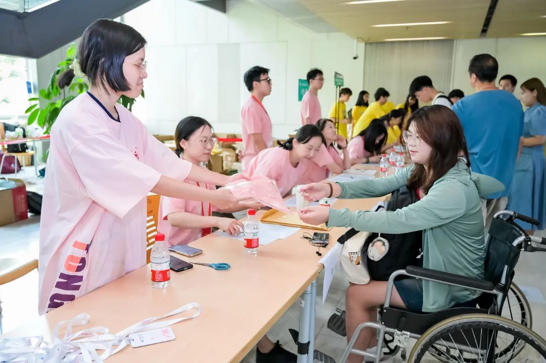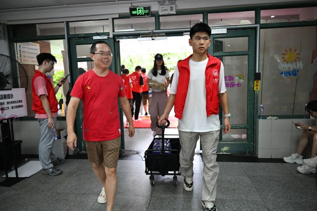 头戴小红帽、身着红马甲,“小红帽”志愿者一直是同济迎新的一道风景线。行李寄存、板车借还、实时指路、搬运行李、解疑释惑,随处可见他们奔忙的身影。此次一共有400名学生志愿者参与迎新,其中包括180名提前几日来校参加新生骨干训练营的本科新生。在志愿服务点,方守恩、郑庆华感谢同学们的辛勤付出和无私奉献。