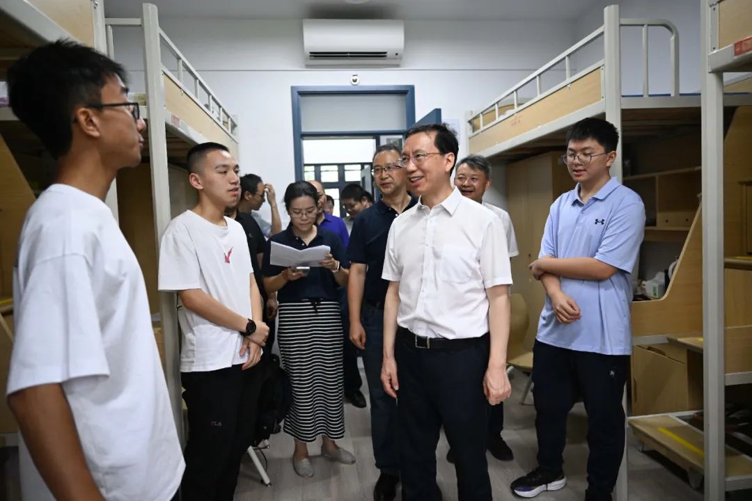 在干训楼、青年楼、西南九楼、西南一楼等男生、女生宿舍楼,方守恩、郑庆华与基础学科拔尖基地班、国豪书院首批未来技术班等学生亲切交谈,希望同学们珍惜学习机会,走好大学每一步,练就过硬本领,厚积薄发,行稳致远。
