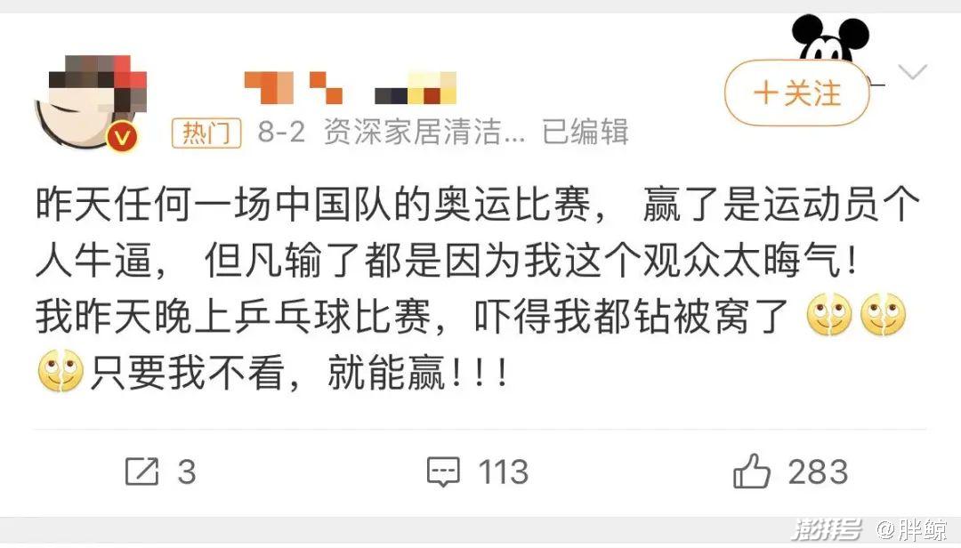 理性来说,奥运会时有输赢,而输赢往往与运动员在赛场上的状态、表现相关,但远在千里之外的国内观众,隔着屏幕相望,也会担心自己的一呼一吸会影响运动员发挥、影响赛况。这正说明了竞技体育无可比拟的刺激性和观赏性。